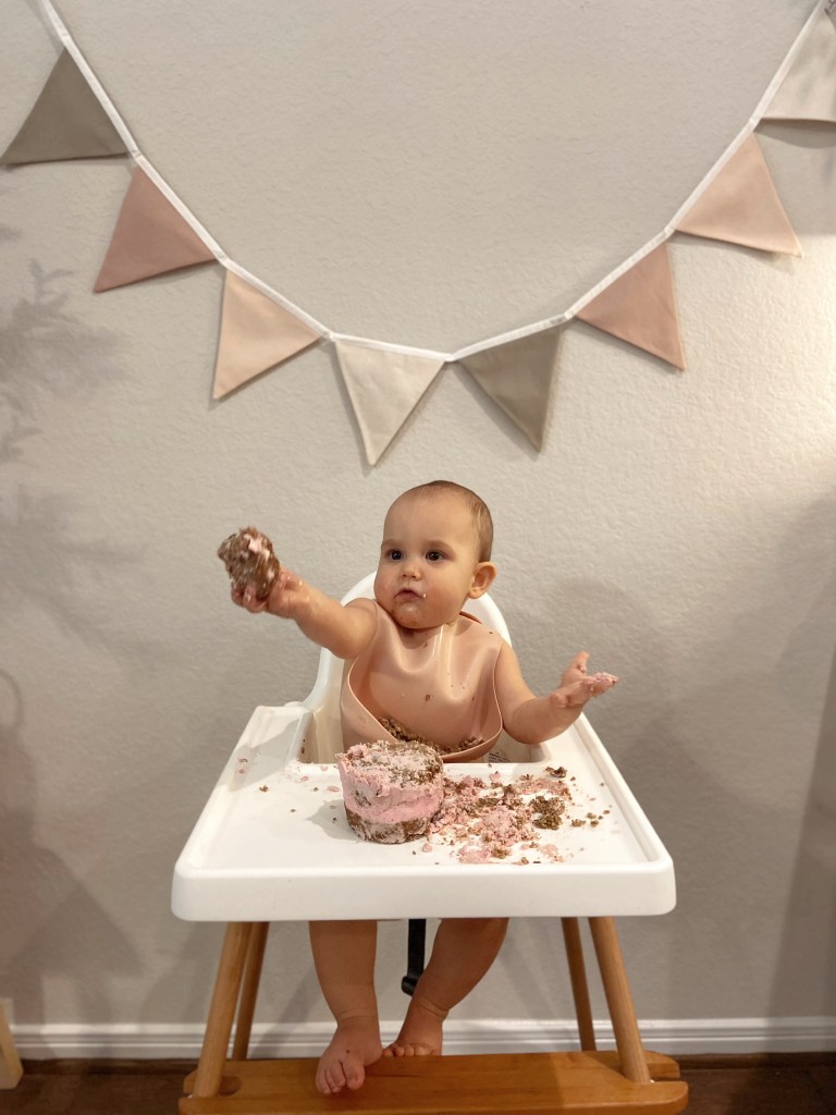 I’ve been working on a recipe for a healthy smash cake for the Bean’s first birthday! I didn’t want there to be any added sugars, only clean simple ingredients that you most likely already have on hand. I also didn’t want to bother with adding any honey or maple syrup, the bananas and applesauce add enough sweetness. Plus if you have a baby under a year old and wanted to make a muffin version out of this, it would be safe for your baby! Watch the full video for the recipe or follow the instructions below!