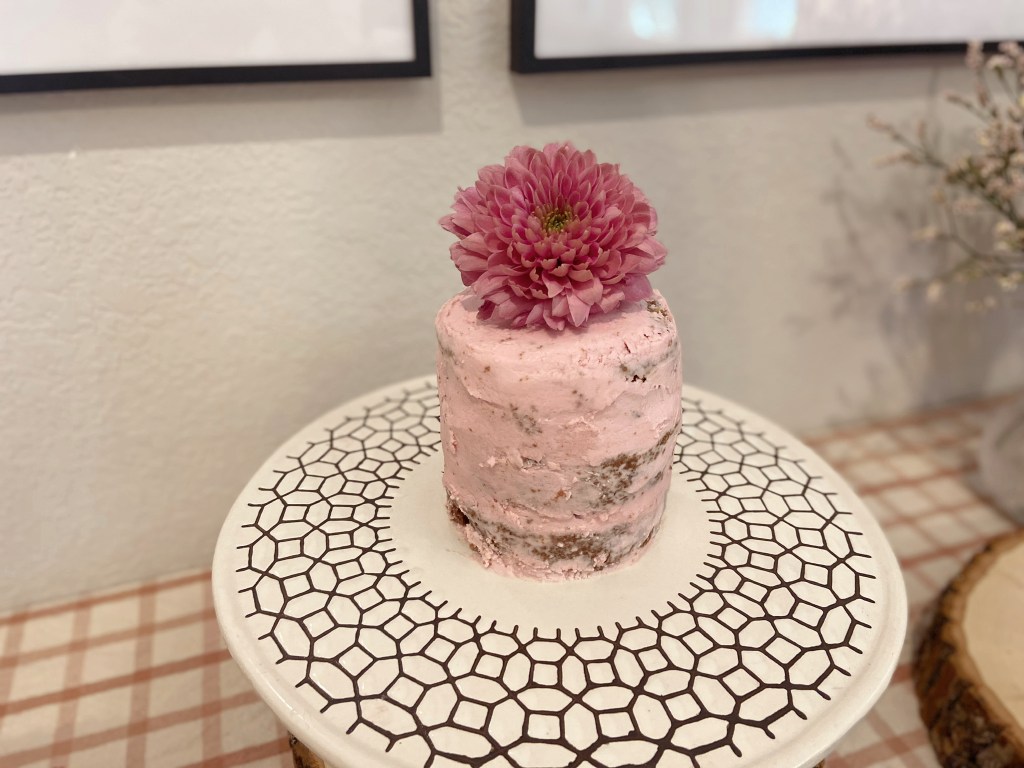 - Then add a splash of beet juice (or whatever you want to create the color desired) to the frosting. Freeze dried strawberries ground up are another good option to achieve a pink color. Then frost your cake and serve! Watch the YouTube video for further details.
